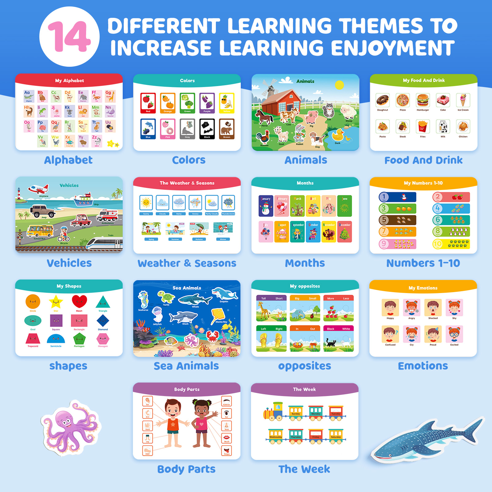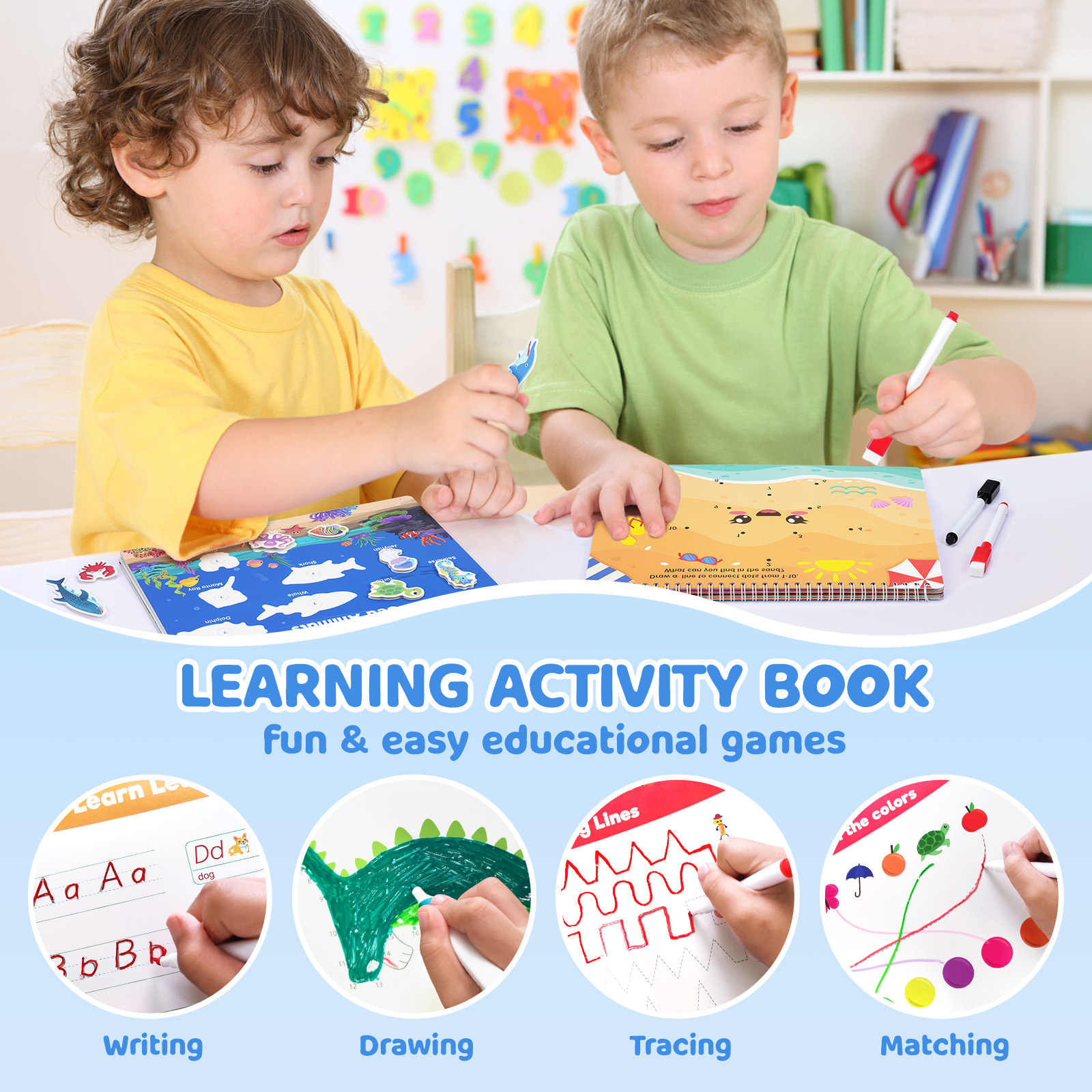 - 【Preschool Learning Activities】14 learning themes & 14 writing and drawing with lines, curves and holding pens, coloring and drawing, numbers 1 to 10, Letters A-Z, letter case match, statistics game, alphabet game. Each page of this preschool workbook offers a new and unique experience to kids.