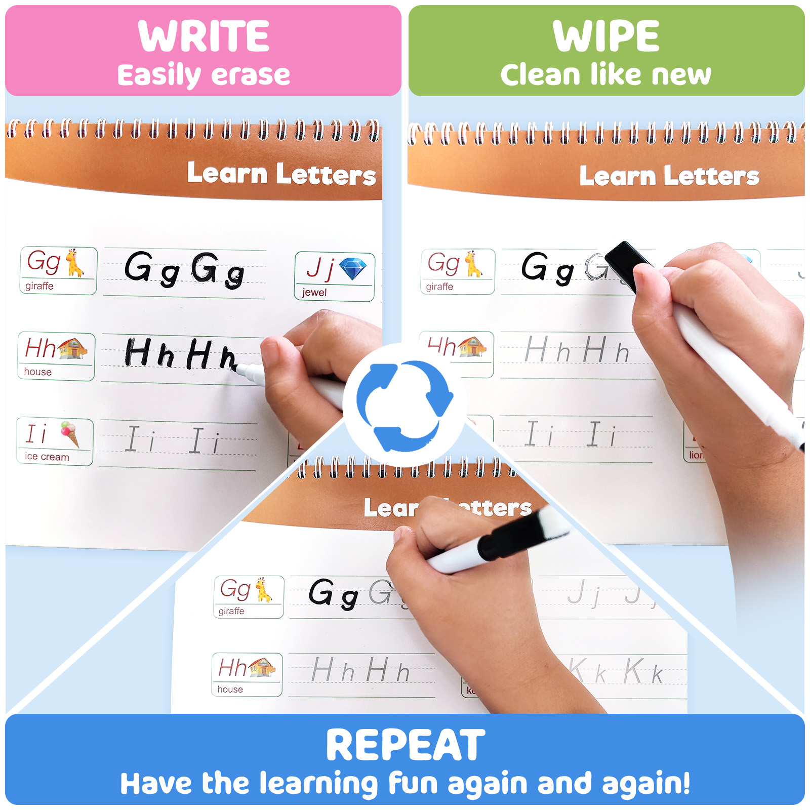 - 【Educational Workbook】The Montessori busy book is extremely attractive, is easy to wipe, the children can complete the entire game process independently. They can easily build their confidence, including improving children’s letter recognition, spelling, and word formation, and help early vocabulary recognition.