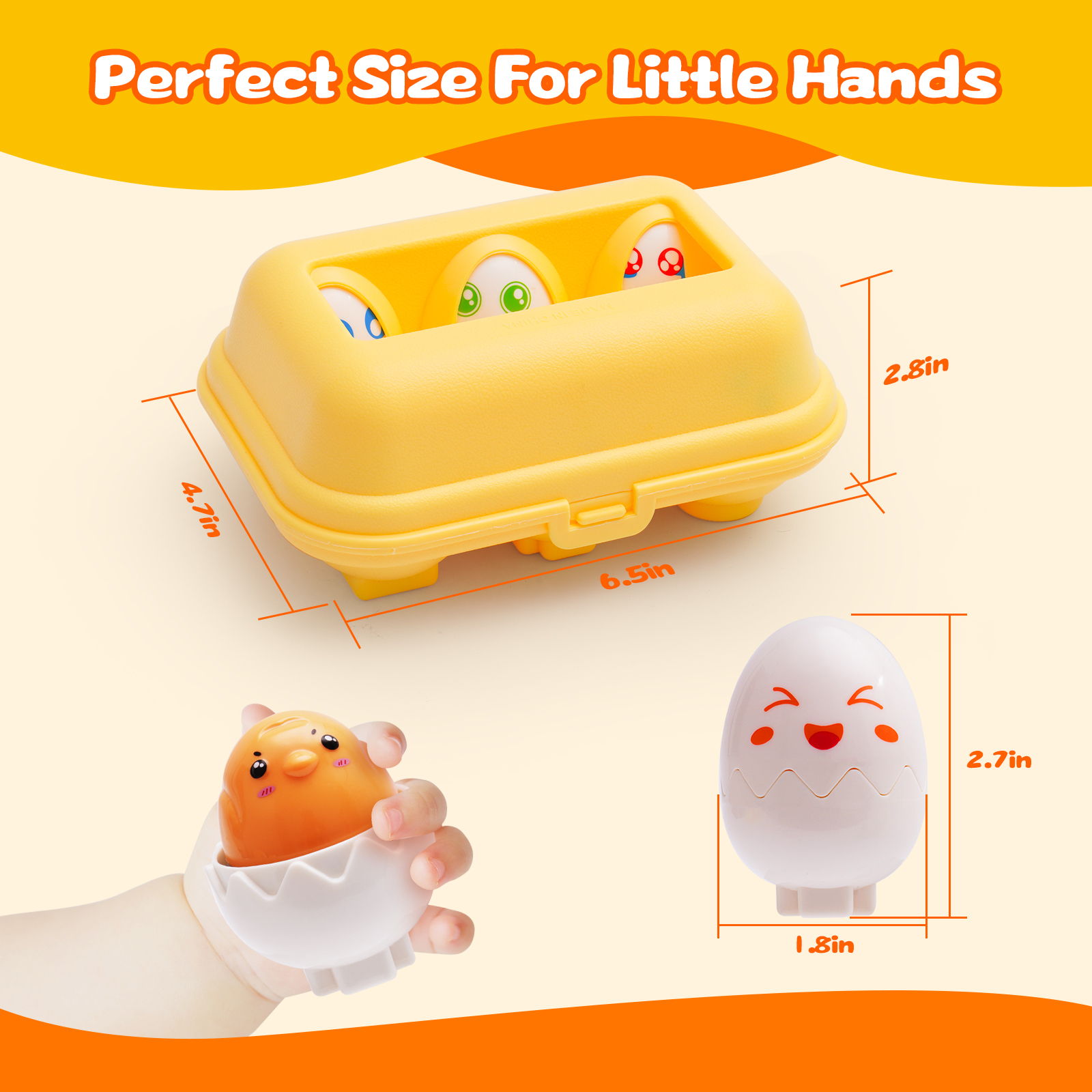 - Kid-Friendly Design: The 2.7″ x1.8″ egg toy is perfect for little fingers to grip and manipulate. Fine workmanship allows kids to open them independently. Perfect for 1-3 year old toddlers boy and girl learning toys